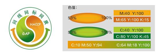 “三同”宣傳標(biāo)識(shí)設(shè)計(jì)圖案包含徽章、葉片、兩儀、微笑曲線、HACCP和GAP詞組等元素:1.宣傳標(biāo)識(shí)的整體造型類似一枚徽章,寓意“三同”是企業(yè)的一個(gè)重要身份證明;2.兩種顏色的葉片環(huán)繞組成一個(gè)兩儀圖案,寓意“三同”企業(yè)和平臺(tái)穩(wěn)健發(fā)展、生生不息,葉片的橙色象征富足豐收,綠色象征健康安全;3.微笑曲線的色彩為橙綠兩種顏色的漸變,兩種顏色分別代表出口與內(nèi)銷,寓意出口與內(nèi)銷產(chǎn)品生產(chǎn)線、標(biāo)準(zhǔn)和質(zhì)量的相同;4.HACCP和GAP詞組直觀體現(xiàn)兩種認(rèn)證制度是推進(jìn)實(shí)施“三同”的重要支撐。