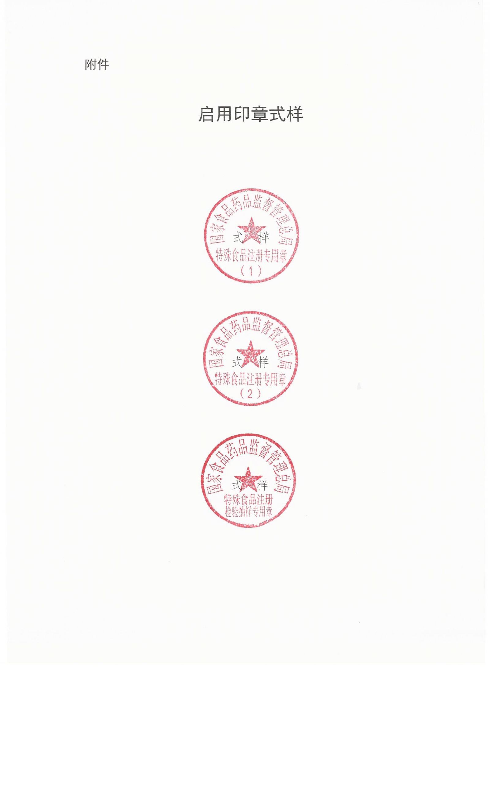 根據(jù)《保健食品注冊與備案管理辦法》(國家食品藥品監(jiān)督管理總局令第22號)、《特殊醫(yī)學用途配方食品注冊管理辦法》(國家食品藥品監(jiān)督管理總局令第24號)和《嬰幼兒配方乳粉產(chǎn)品配方注冊管理辦法》(國家食品藥品監(jiān)督管理總局令第26號),自2017年8月1日起,啟用“國家食品藥品監(jiān)督管理總局特殊食品注冊專用章(1)”用于保健食品注冊,“國家食品藥品監(jiān)督管理總局特殊食品注冊專用章(2)”用于特殊醫(yī)學用途配方食品和嬰幼兒配方乳粉產(chǎn)品配方注冊,“國家食品藥品監(jiān)督管理總局特殊食品注冊檢驗抽樣專用章”用于特殊食品抽樣。